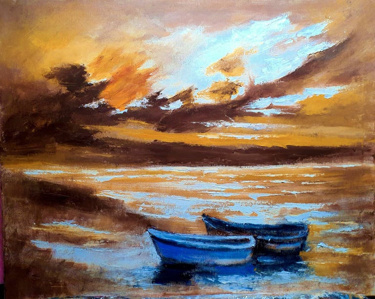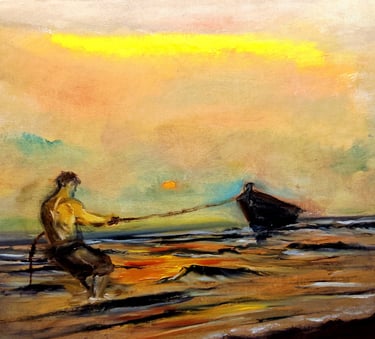 "СТАРИТЕ ЛОДКИ"-на платно 50х40 см, рамка,Цена 300 лв,150 EUR