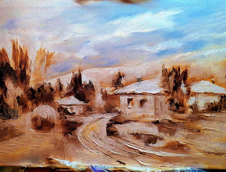 Маслени картини с топли цветове и детайлен подход.